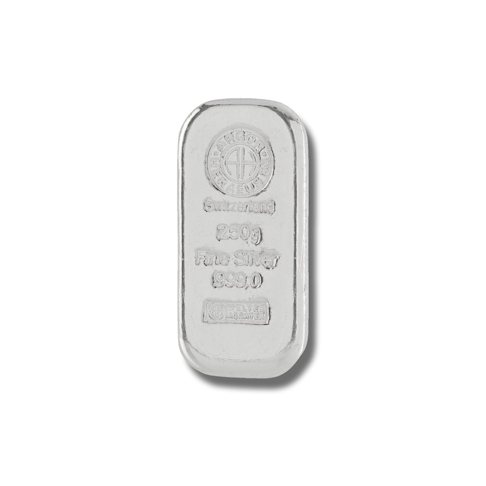 This high-quality 250-gram silver bar, produced by the renowned company Argor-Heraeus, is made from pure silver (99.99% Ag).