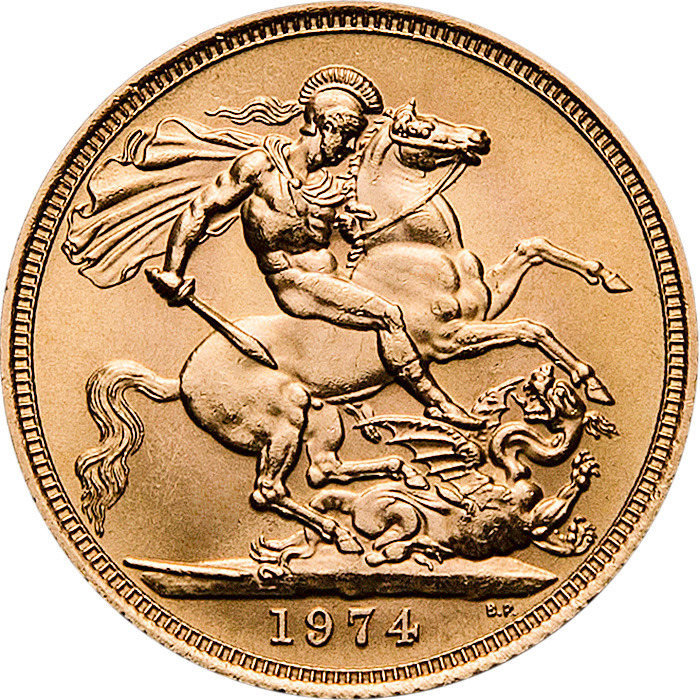 The obverse side features the portrait of the current British monarch, while the reverse side showcases the legendary depiction of St. George slaying the dragon.